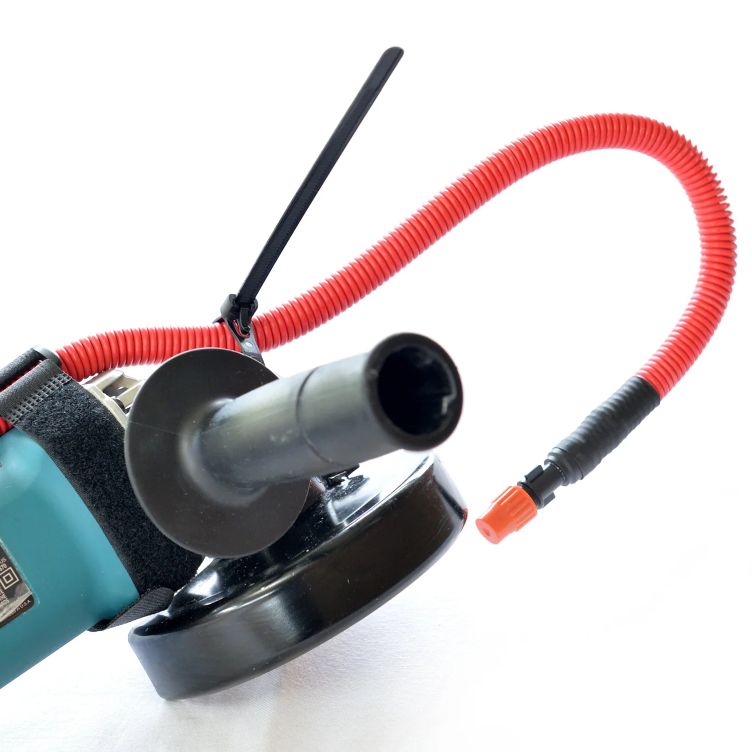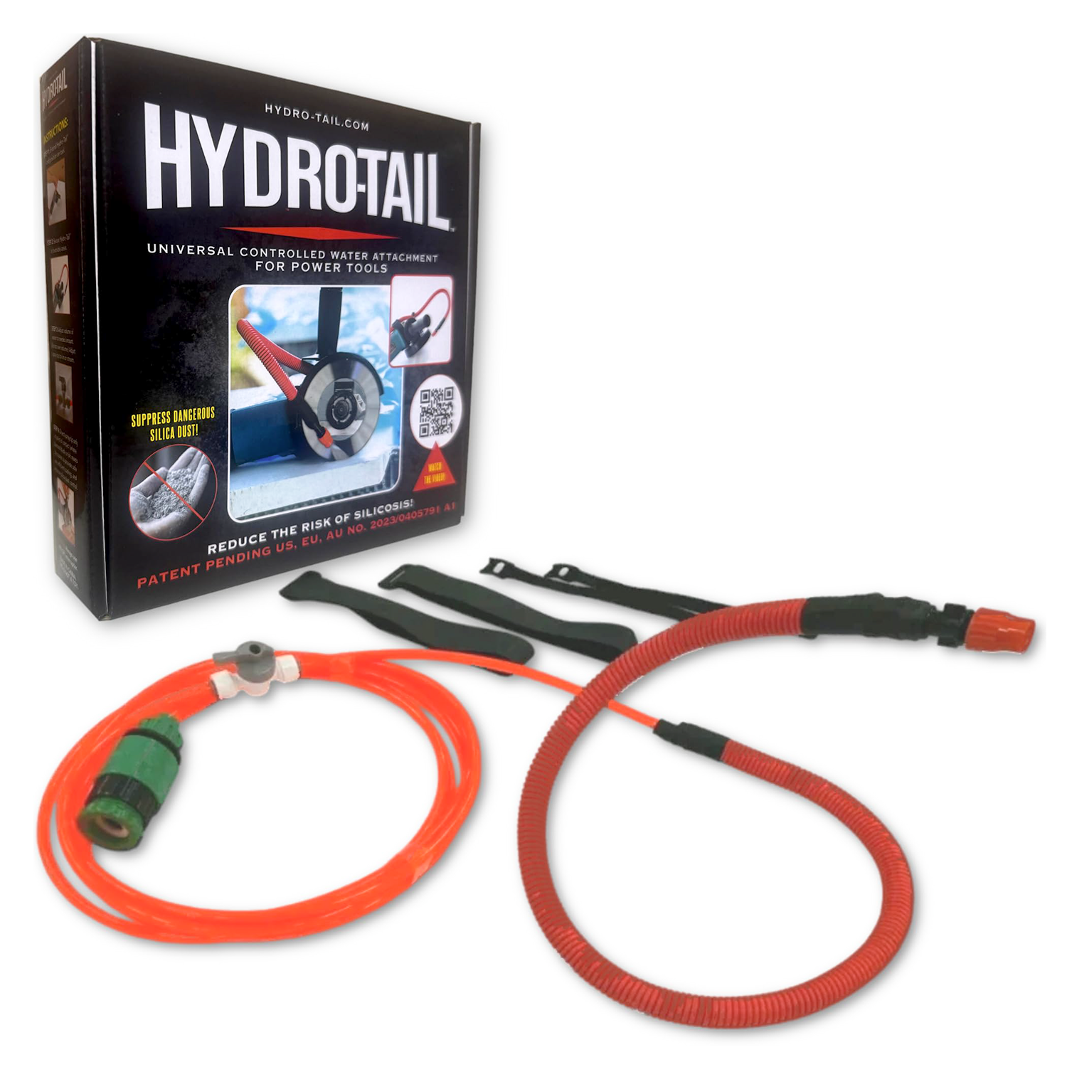 Revolutionize your workflow! The Hydro-Tail™ Universal Controlled Water Attachment water-distribution attachment tames dust, cools your tools, and protects your health. Universal fit for all your power tools. A game-changer for every job site.